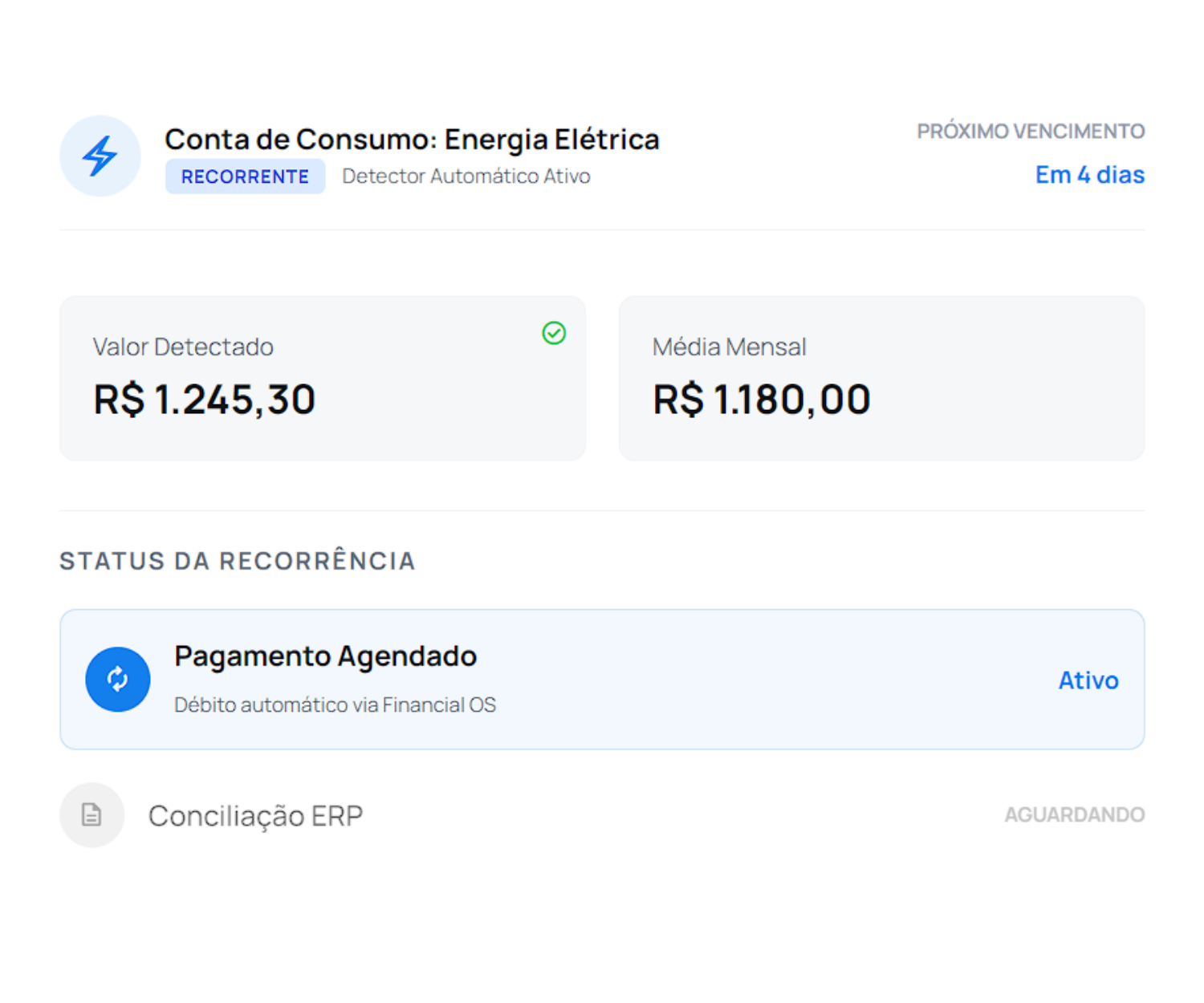 Pagamento automático de água, luz, internet e aluguel com captura inteligente de boletos e faturas.